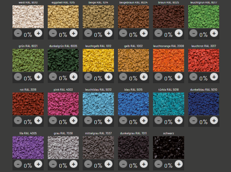 Barevná škála zahrnuje základní MIXOVANÉ barvy kaučukových granulí EPDM